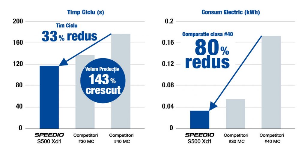 - Utilizarea seriei SPEEDIO poate economisi mai multă energie decât alte centre de prelucrare.