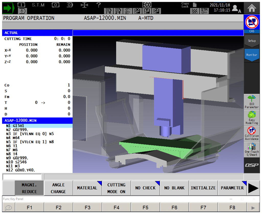 Pe măsură ce mașinile devin mai complexe, există mai mult loc pentru erorile umane. Cu toate acestea, sistemul nostru de prevenire a coliziunilor (CAS) ajută la eliminarea unora dintre aceste erori din ecuație prin integrarea modelării 3D a mașinilor noastre, a semifabricaților și a instrumentelor noastre pentru a crea o mașină virtuală. Când rulați aplicația virtuală în timp real cu câteva secunde înainte de tăierea efectivă, orice problemă poate fi detectată din timp, iar mașina poate fi oprită înainte de o coliziune costisitoare. În timp ce modelarea virtuală necesită dimensiuni și definiții exacte, putem îndeplini aceste cerințe stricte, deoarece fabricăm mașina și creăm aplicațiile personalizate.