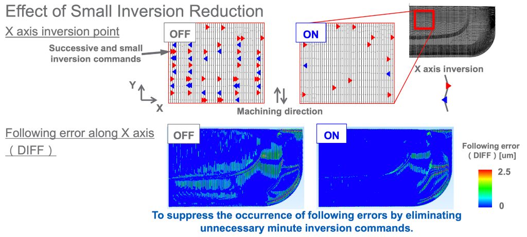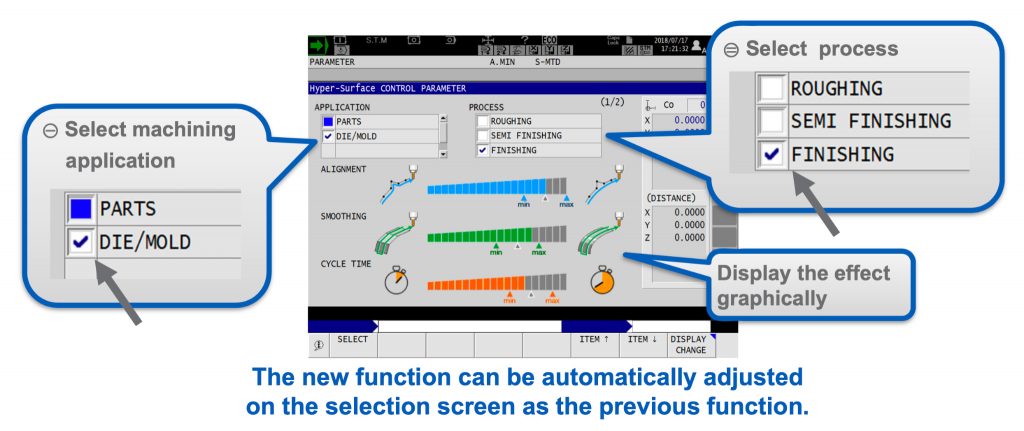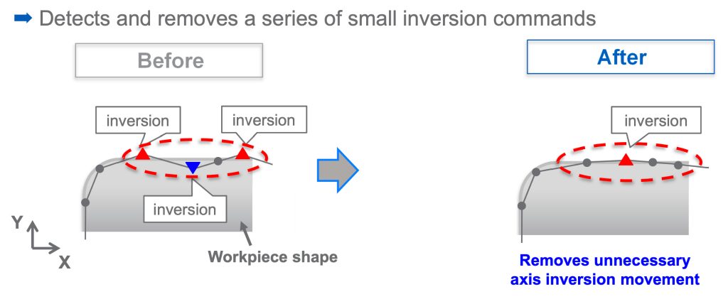 Corectează automat variațiile mici ale pozițiilor comenzii datelor de prelucrare ale ieșirii de la un procesor CAM. De asemenea vitezele de trecere pentru fiecare traseu de așchiere la colțuri sunt realizate consistent. Aceasta stabilizează vitezele de avans și îmbunătățește calitatea suprafeței.