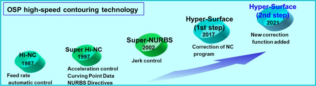 Caracteristica Hyper-Surface detectează perturbările și variațiile datelor de prelucrare a ieșirii CAM, care au ca rezultat zgârieturi pe suprafețe. Funcția face automat corecții asupra controlului Okuma pentru a îmbunătăți calitatea suprafeței fără a modifica datele de prelucrare, menținând în același timp precizia necesară a formei. Acest lucru nu numai că elimină timpul necesar de obicei pentru finisarea manuală, dar reduce și zgârieturile și muchiile inegale.