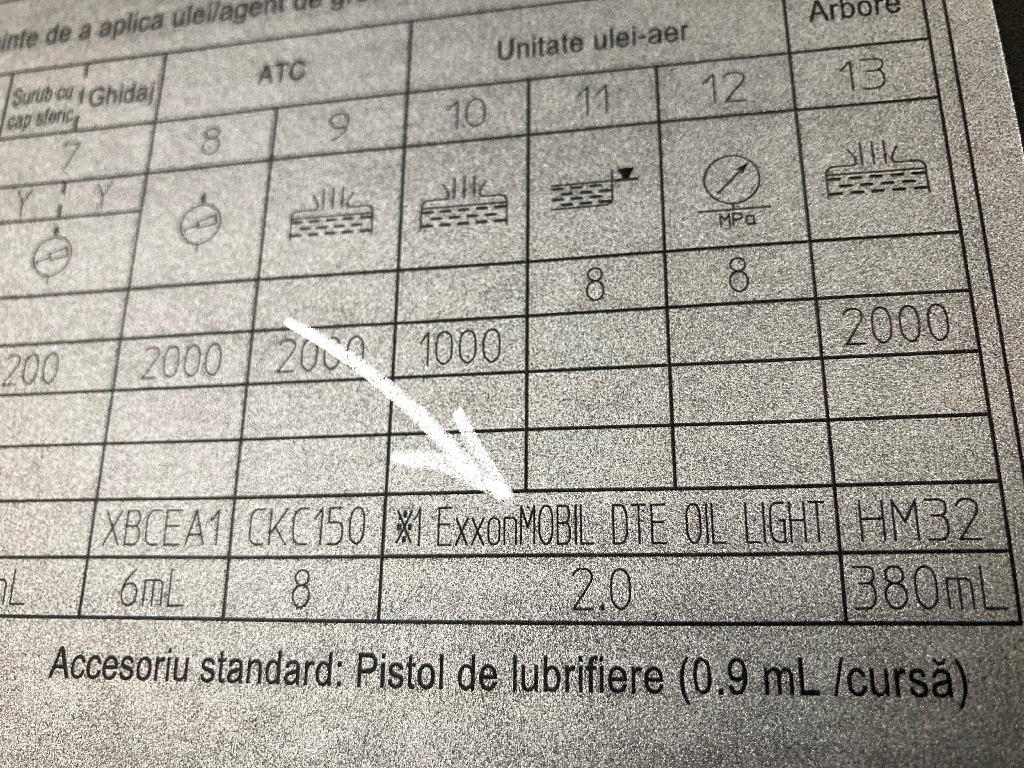 Folosiți numai uleiul sau lubrifiantul specificat (în cazul nostru de mai jos, ExxonMOBIL DTE OIL LIGHT).