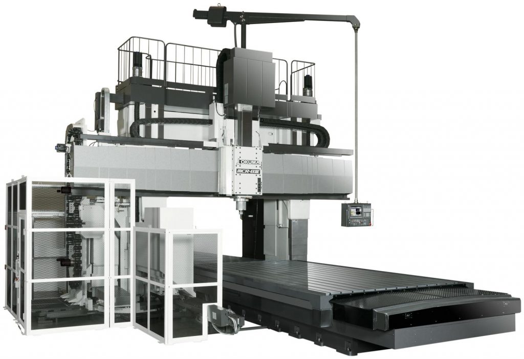 Centrul de prelucrare cu două coloane Okuma MCR-BIII asigură prelucrarea cu cinci fețe a pieselor într-o singură configurație, economică și eficientă. Capul de tip berbec are un arbore vertical de 30 kW, 4.000 rot/min pentru o așchiere puternică și rigiditate. O mare varietate de prelucrare, inclusiv prelucrarea suprafețelor unghiulare și unghiulare compuse, poate fi efectuată automat cu o singură piesă de prelucrat configurată prin utilizarea diferitelor atașamente. Schimbarea automată a sculei sau al atașamentul orizontal este prevăzută cu o magazie de scule standard de 32 posturi situat pe partea laterală a coloanei, cu capacități suplimentare ale lanțului de scule opționale. MCR-BIII este suficient de versatil pentru a gestiona orice, de la așchierea grea la finisarea de înaltă precizie a lucrărilor pentru matrițe și piese mari și complexe.