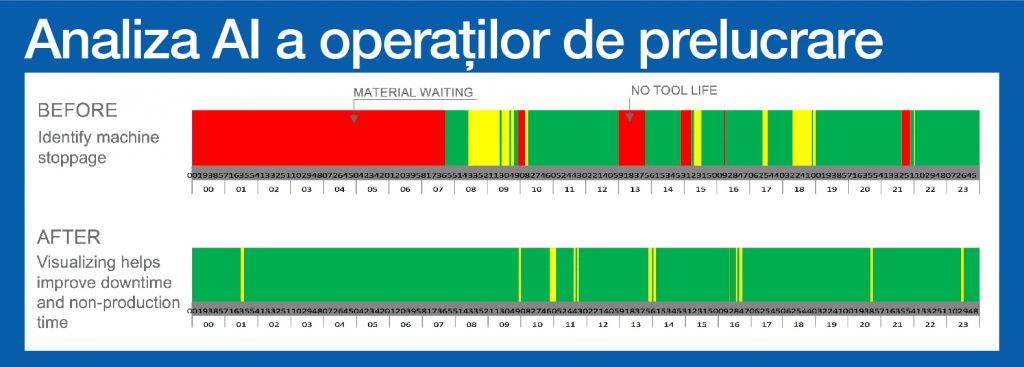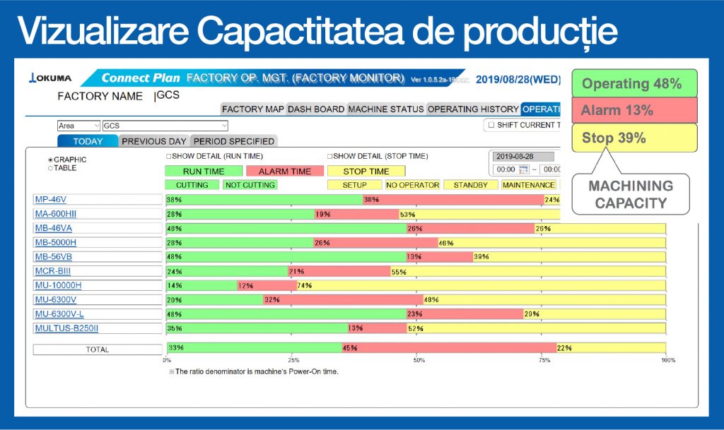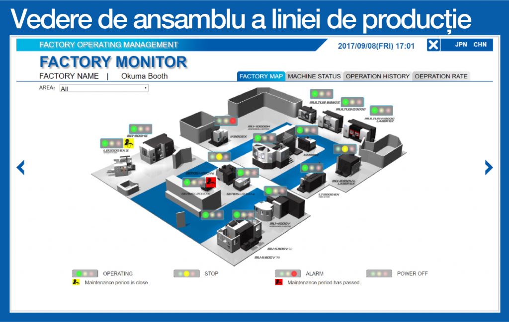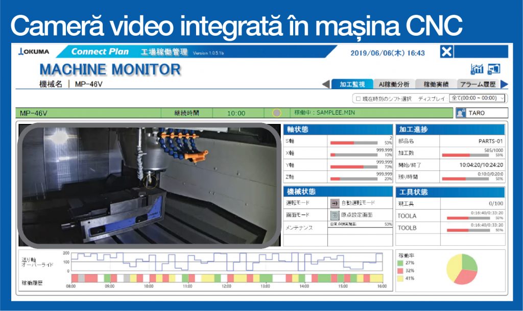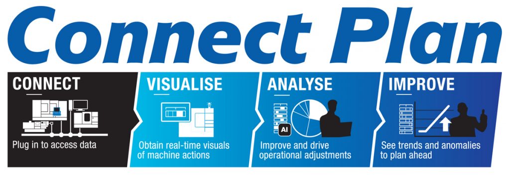 Connect Plan este soluția complet integrată Smart Factory de la OKUMA, ușor de conectat la mașini unelte, monitorizare, analiză și optimizare sau planificare a întregii linii de producție sau a fabricii, analiza predictivă AI a operării mașinilor și prelucrării, eliminarea timpilor morți, optimizare a prelucrării caștig în timp și bani.