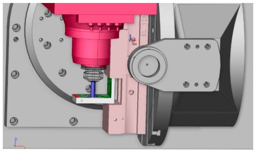 - prelucrarea unei astfel de piese poate fi realizată și pe o mașină CNC cu numai 3 axe comandate numeric (X, Y, Z), dar sunt necesare mai multe prinderi, iar productivitatea este redusă.