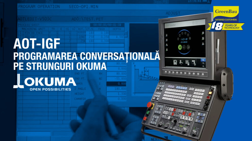 Practic, toți proprietarii și managerii de ateliere de prelucrare caută să scurteze timpul de pregătire și ciclul de producție. Pentru atingerea acestor obiective, inginerii și operatori iau în considerare instrumentele de programare conversațională, cum ar fi Advanced One Touch (AOT) – IGF (Interactive Graphic Functions) de la Okuma. Programarea conversațională permite operatorilor să genereze cu ușurință programe direct pe comanda numerică OSP a mașinii CNC în câteva minute, cu o serie de indicații de date încorporate care implică geometria piesei, piesa de prelucrat, procese.