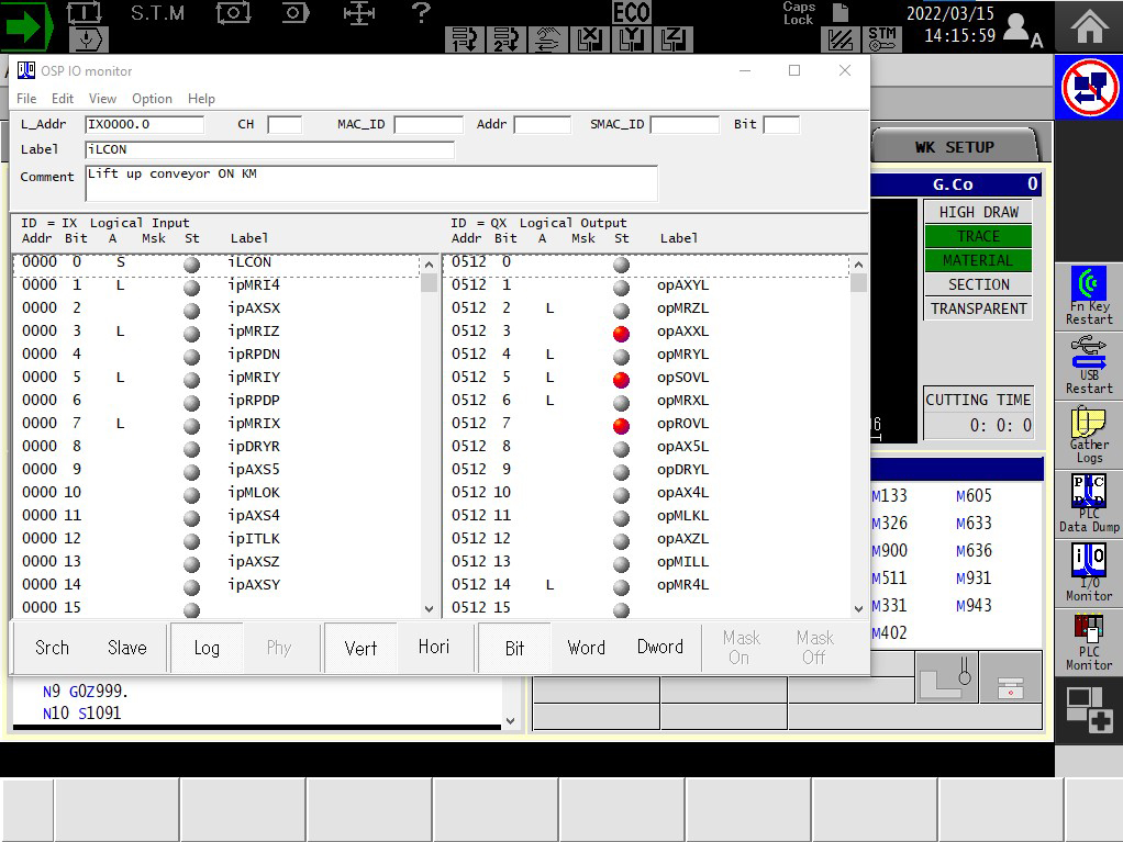 Pentru a utiliza variabilele I/O pe controlul OSP al Okuma, trebuie să știți ce este un I/O și unde să îl găsiți. Ele pot fi folosite pentru depanare sau pentru programare preventivă. Astăzi ne vom concentra pe programarea preventivă folosind variabilele I/O. Pe controlul Okuma OSP, acestea pot fi găsite în bara neagră din lateral, sub Monitorizare I/O.