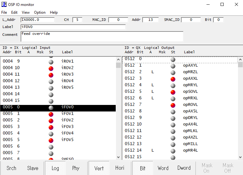 Aici vedem o listă de intrări și ieșiri. Această listă arată starea curentă a oricărui comutator dat de pe o mașină-uneltă.