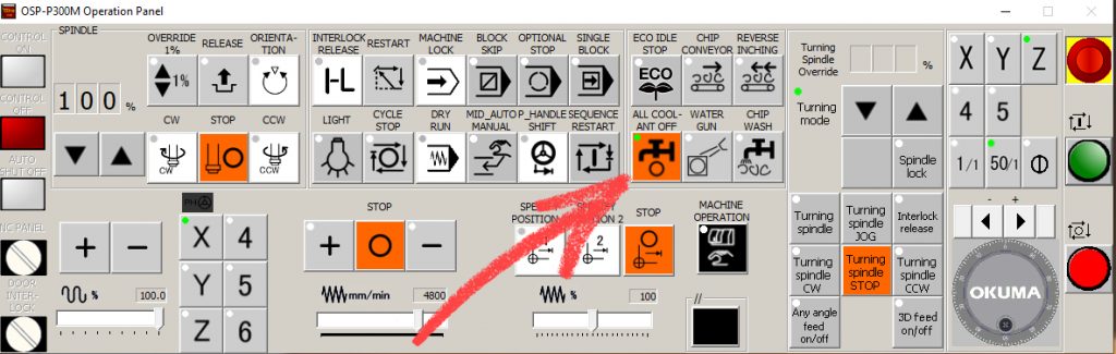 Dacă ați prelucra o gaură adâncă, de exemplu, nu ați dori ca un burghiu cu lichid de răcire prin arborele principal să funcționeze fără lichidul de răcire. Deci, dacă un operator ar avea butonul „All Coolant Off” aprins în prezent, aceasta ar cauza o problemă, probabil o defecțiune a sculei și, posibil, un zgomot puternic în timpul prelucrării.