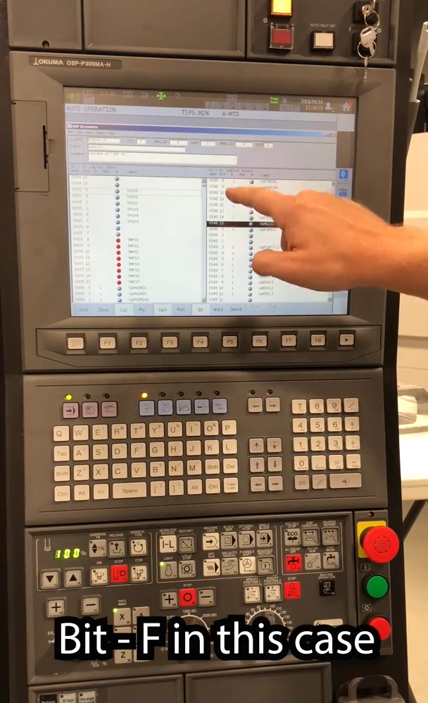 Atunci, în codul meu, am 0036, care este 548 minus 512, și F, care este în prezent în starea OFF. În codul nostru scrie că dacă această stare este aprinsă (ON), pornește alarma. Momentan este OFF. Deci, când rulez acest cod, mașina va prelucra.